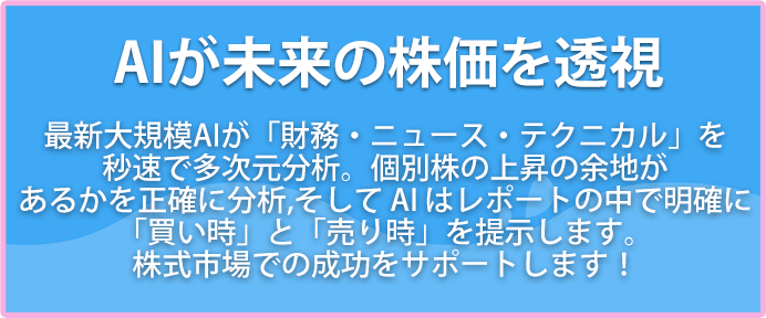 詳細な株式レポ-トを取得するために、AIアシスタントを追加してください。また、今日のおすすめ優良株3銘柄も追加で受け取ることができます。